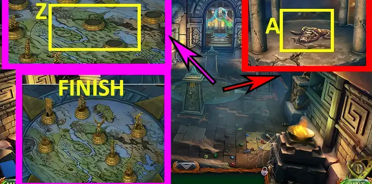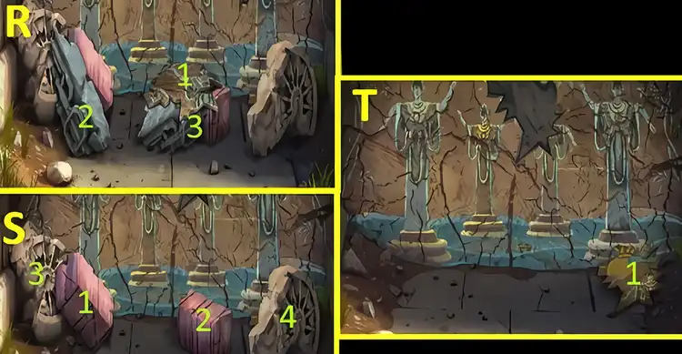 ✔ Solve the puzzle. Rotate the obelisks according to the prophecy that you found in the treasury.
